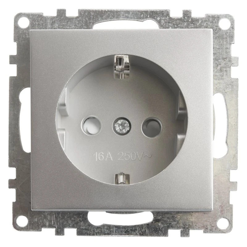 Розетка 1-местная с защитной шторкой с/з (механизм), 250В, 16А, серия Катрин, серебро STEKKER GLS16-7110-03 39582