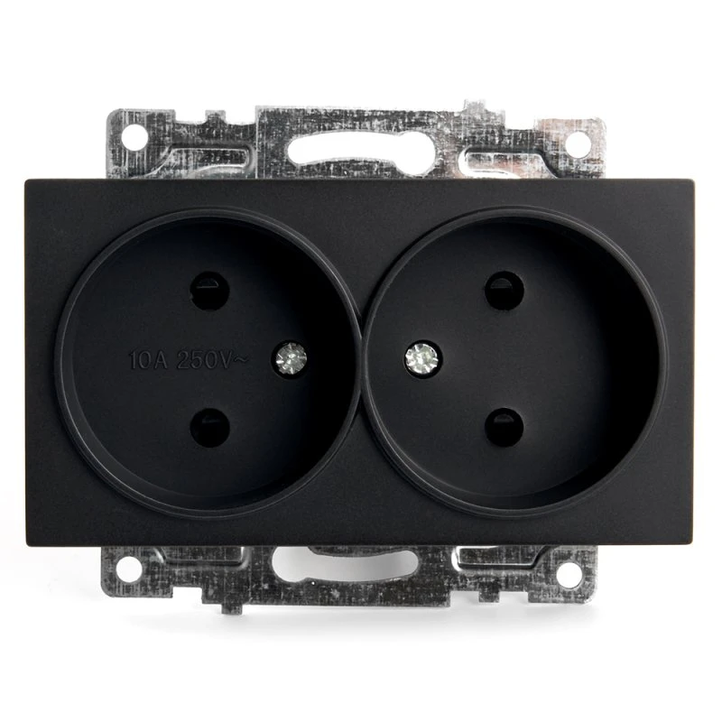 Розетка 2-местная б/з, Катрин, черный, STEKKER GLS10-7113-05 39611