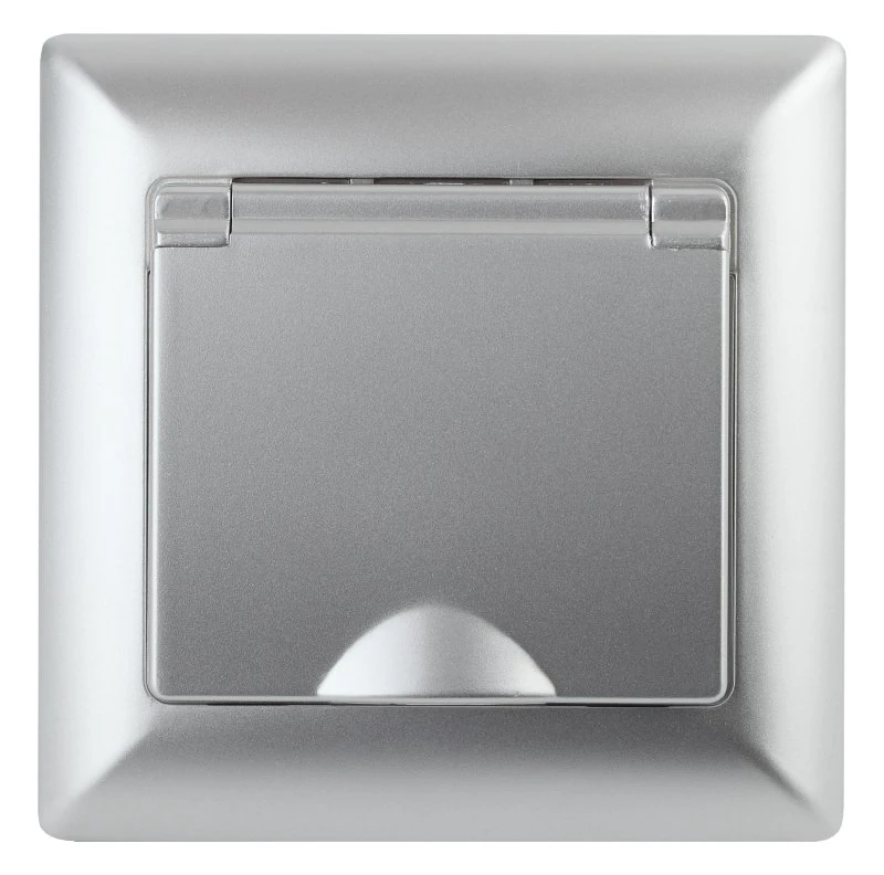 Розетка 2P+E Schuko с крышкой, 16А-250В, СУ, Solo, алюминий, 4-203-03 ЭРА Б0043321