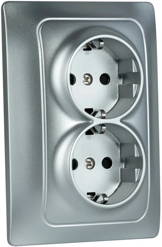 Двойная розетка предназначена для подключения бытовых и других аналогичных электрических приборов. Имеет боковой заземляющий контакт, который служит для снижения опасности короткого замыкания и поражения электрическим током, а так же защиту от проникновения в контактные отверстия для вилки.