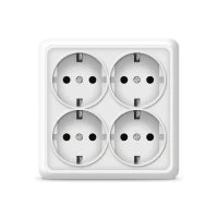 Розетка четырехместная квадратная Олимп с/з, наружная, 16А, 220В, белая (еврослот) UNIVersal 1165