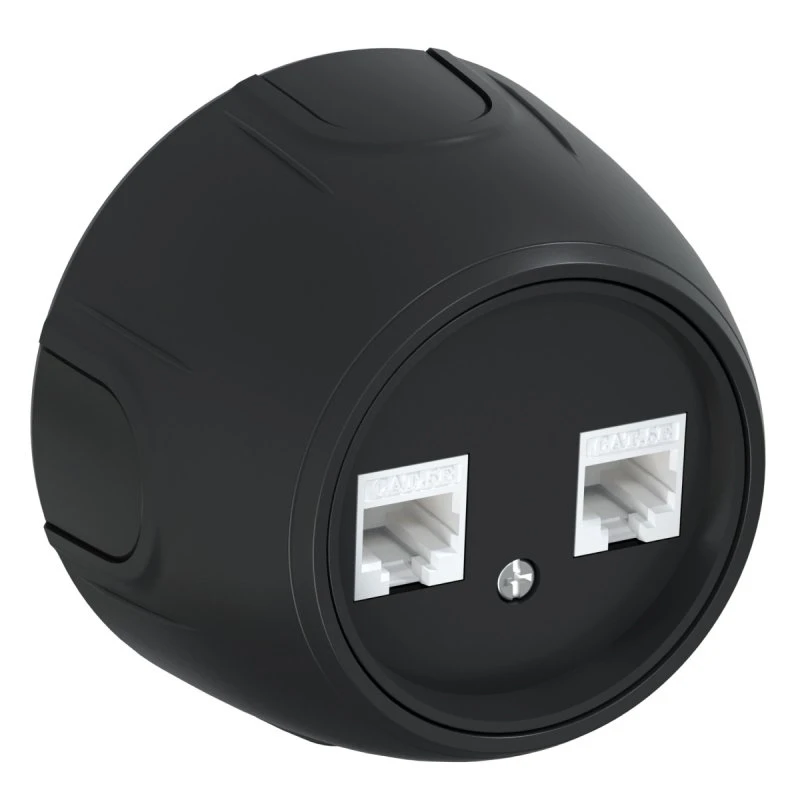 Розетка двойная компьютерная RJ45 кат.5e Rotondo, цвет черный OneKeyElectro 3E20901203 7700895