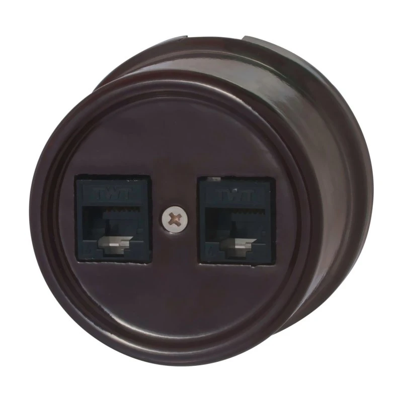 "Компьютерная розетка – обязательный элемент любого интерьера, ведь без компьютерной техники сегодня не обходится ни один дом. Идеальным решением станет компьютерная розетка от компании BIRONI. Коробка выполнена из высокопрочной электротехнической керамики, обладающей высокой механической прочностью и устойчивостью к температурным воздействиям, что обеспечивает надежность работы. Данная электрика отличается повышенной надежностью и износоустойчивостью, имеет длительный эксплуатационный срок. Для наружного монтажа с открытой проводкой Bironi в интерьерах в стилях ретро, лофт, винтаж, модерн, стимпанк и минимализм. Имеет встроенную рамку из бука цвета ""Старое дерево""."