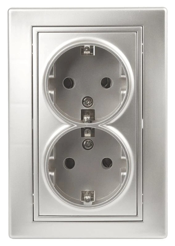 Розетка однофазная двойная скрытого монтажа, в рамку с заземлением без шторок алюминий 16А 250В IP20 1-205-03 Intro Plano Б0053917