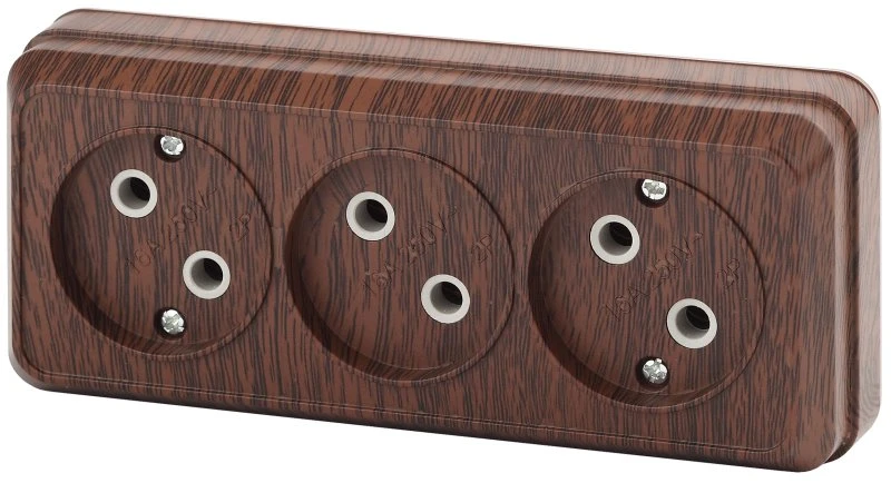 Розетка однофазная тройная наружная (открытой установки) без шторок венге 16А 250В IP20 2-205-10 Intro Quadro Б0053815