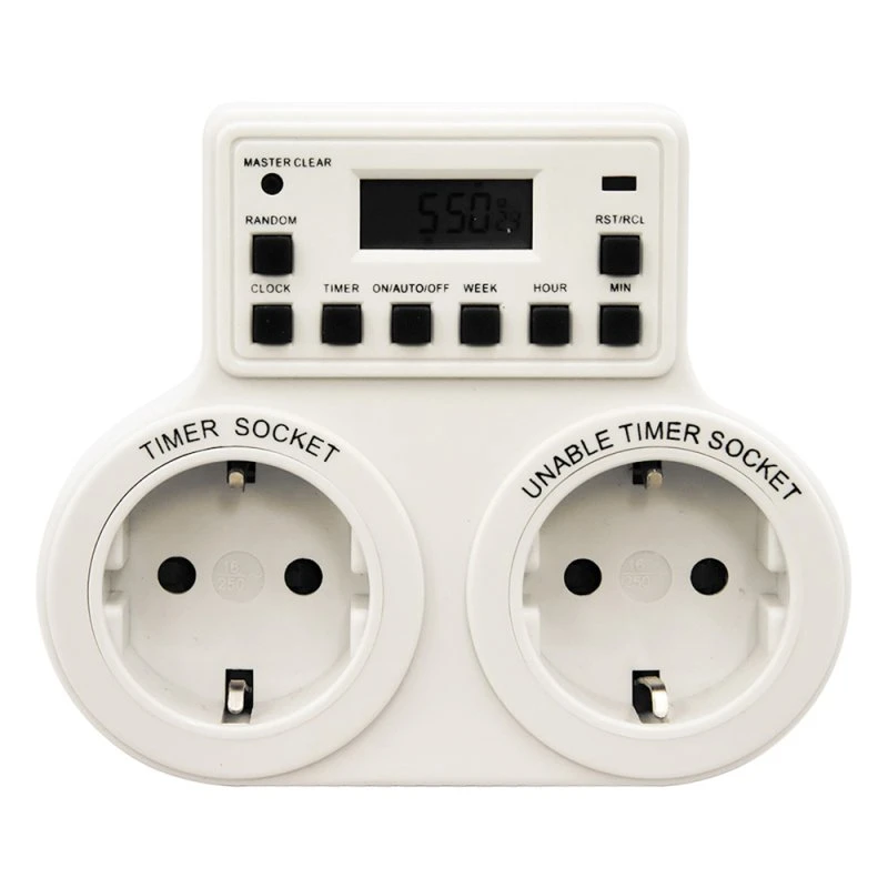 Недельная электронная розетка-таймер ТМ25 поможет настроить любой осветительный или электроприбор, работающий от розетки 230В, на периодическое включение и выключение. Модель оснащена 2-мя розетками, один блок работает, как обычная розетка, второй блок – как таймер. Преимущества - Электронное управление, 10 программ ВКЛ/ВЫКЛ ''ON/OFF'' с шагом в 1 минуту, 16 комбинаций дней недели, Выдерживают нагрузку до 3,5 кВт / 16А, Возможность работы до 100ч в автономном режиме, Функция случайного включения. Сфера применения - могут применяться в квартирах, загородных домах и подсобных личных хозяйствах для управления такими приборами, как ночники, настольные лампы, новогодние гирлянды, фитолампы, аквариумы. Также подойдут для регулировки освещения в аквариумах, птичниках, теплицах.