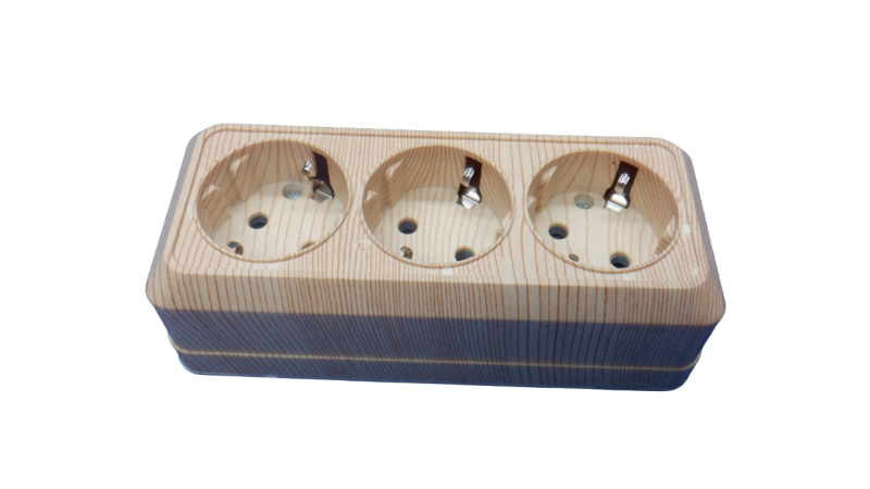 Розетка трехместная Олимп с/з, наружная, 16А, 220В, сосна (еврослот) UNIVersal 1173