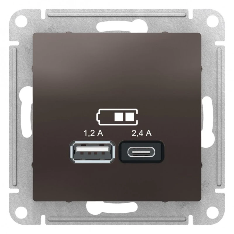 РОЗЕТКА USB ATLASDESIGN A+С, 5В/2,4А, 2х5В/1,2А, механизм, МОККО Systeme Electric ATN000639