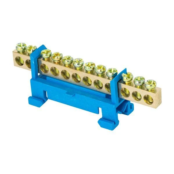Шина 0 N (6х9мм) 12 отверстий латунь синий изолятор тип Стойка на DIN-рейку PROxima EKF sn0-63-12-sb