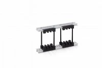 шинодержатель 2Р для 3-х шин до 120х10 серии ШД-101. Конструкция шинодержателя является разборной и состоит из алюминиевых профилей, изоляторов из полиамида, а также необходимых крепежных элементов. Поставляется одним комплектом - изоляторы, планки для сборки и крепежные элементы. Возможность гибкой регулировки и использования обычной плоской медной шины (от 30х10 до 120х10). За счет изменения расстояния между фазными проводниками достигаются необходимые технические параметры. Возможны варианты поставки 1Р, 2Р, 3Р, 4Р, 5Р. Применяется для организации шинных систем внутри шкафов распределения электроэнергии
