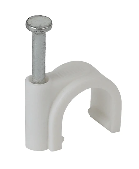 Предназначены для крепления круглых и плоских кабелей. Изготовлены из гибкого негорючего ударопрочного полипропилена, гвоздь - закаленная оцинкованная сталь.