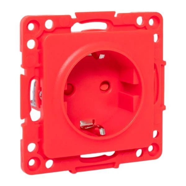Стокгольм Механизм Розетки 1-местной с/з 16А винтовые клеммы красный с защ. штор. EKF EYR16-028-30