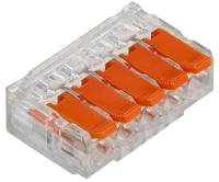 Клемма строительно-монтажная серии 221 предназначена для соединения одножильных и многожильных медных проводников без использования инструмента в электрических сетях переменного и постоянного тока. Клемма допускает многократное присоединение и отсоединение проводников. Количество подключаемых проводников - 5.