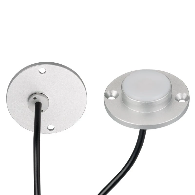 Накладной светильник для стен, лестниц, пола со сменными декоративными накладками (приобретаются отдельно). Мощность 1.2 Вт, св. поток 85 лм, 71 лм/Вт, теплый 3000 K, CRI-80, угол 120 градусов (зависит от накладки), напряжение питания DC 12-24 В. Серебристый круглый корпус из алюминия, экран PMMA, степень защиты IP67, выдерживает нагрузку 320 кг, ударопрочность IK06. Размер - диаметр 40 мм, высота 10.2 мм. Монтаж накладной. Драйвер приобретается отдельно. ВНИМАНИЕ! Светильник не поддерживает регулирование светового потока ШИМ.