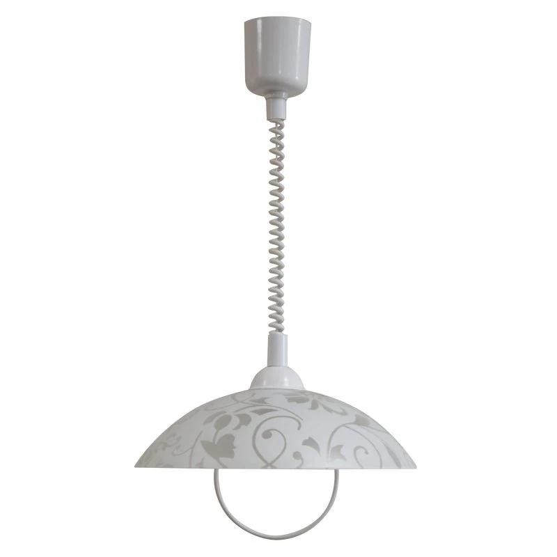 Светильник подвесной с лифтовым механизмом отлично подойдет для интерьера, оформленного в современном стиле и способен эффективно осветить помещение площадью до 7 м2. Производитель рекомендует использовать в светильнике лампы накаливания с цоколем E27 и мощностью 60W, а также светодиодные или энергосберегающие лампы. Модель произведена с использованием материалов - стекло и пластик. Узел крепления светильника на крюк позволяет легко монтировать его на потолок, даже в случае устройства натяжного потолка. Высота светильника легко регулируется лифтовым механизмом. Основным цветом товара является белый. Светильник дает максимум света, рассеиватель выполнен из стекла (экологичного и долговечного материала). Стеклянный плафон легко моется и сохраняет свой безупречный внешний вид на протяжении всего срока эксплуатации.