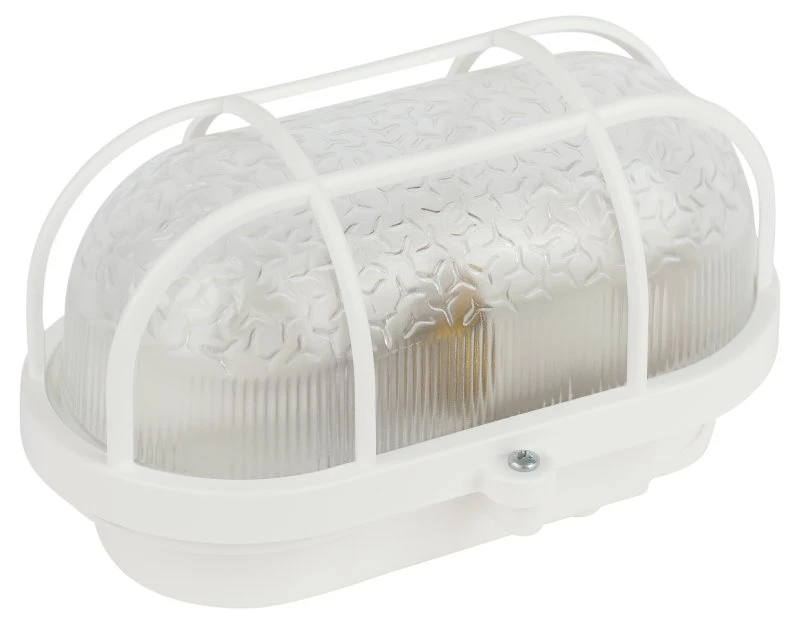 Светильник с решеткой Евро пластик/стекло IP53 E27 max 60Вт 184х115х90 овал белый НБП 01-60-002 ЭРА Б0052015