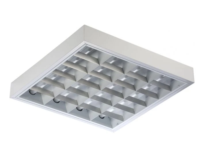 Светильник накладной, растр белого цвета, ЭПРА (класс энергосбережения EEI-A2) Helvar и т.п., блок аварийного питания. Конструкция - корпус из листовой стали с полимерным покрытием белого цвета, оптическая система - растр ''классика'' из алюминия с белым глянцевым покрытием с высоким коэффициентом отражения, устанавливается в корпус и фиксируется специальными защелками. Крепятся на поверхность потолка. Области применения - офисы, административные здания, магазины, учебные заведения, учреждения здравоохранения.