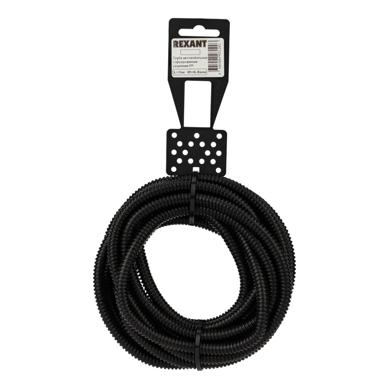 Труба автомобильная гофрированная ПП, 6,8мм, разрезная, бухта 5 м/уп., REXANT 15-0705