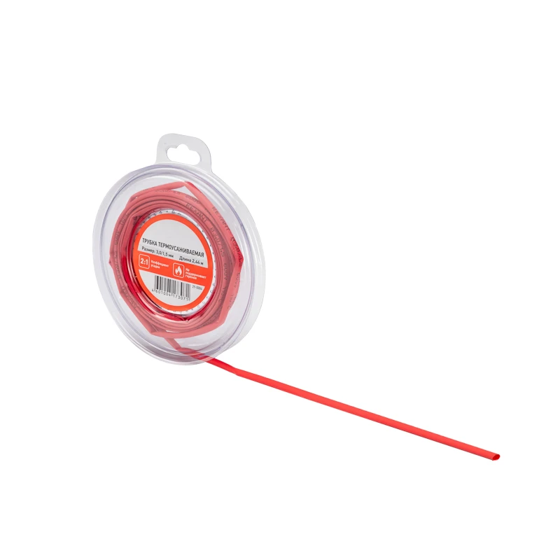 Трубка термоусаживаемая 3,0 1,5 мм красная, ролик 2,44 м, REXANT 29-0004