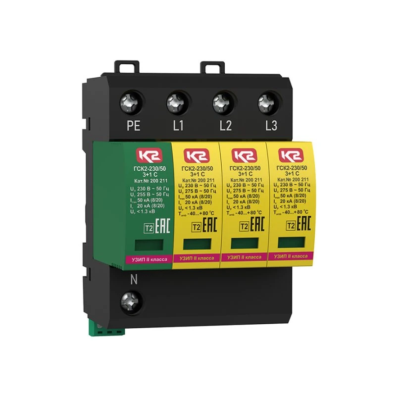 УЗИП ГРОЗОСТОП ГСК2-230/50 3+1 С, класс II, In - 20 кА (8/20), Imax (8/20) - 50 кА Ключевой Компонент (Хакель) 200211 200 211