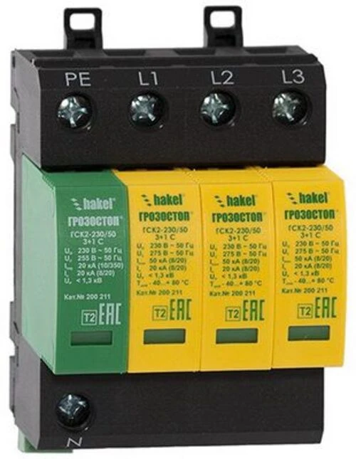 УЗИП ГРОЗОСТОП ГСК2-60/20 3+1, класс II, In - 15 кА (8/20), Imax - 40 кА (8/20) Ключевой Компонент (Хакель) 200113 200 113