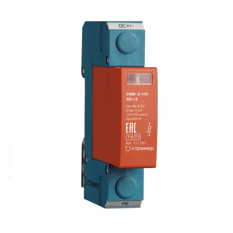 УЗИП (Устройство защиты от импульсных перенапряжений) для систем постоянного тока РИФ-Э-I+II 48=/4 СТРИМЕР 111007