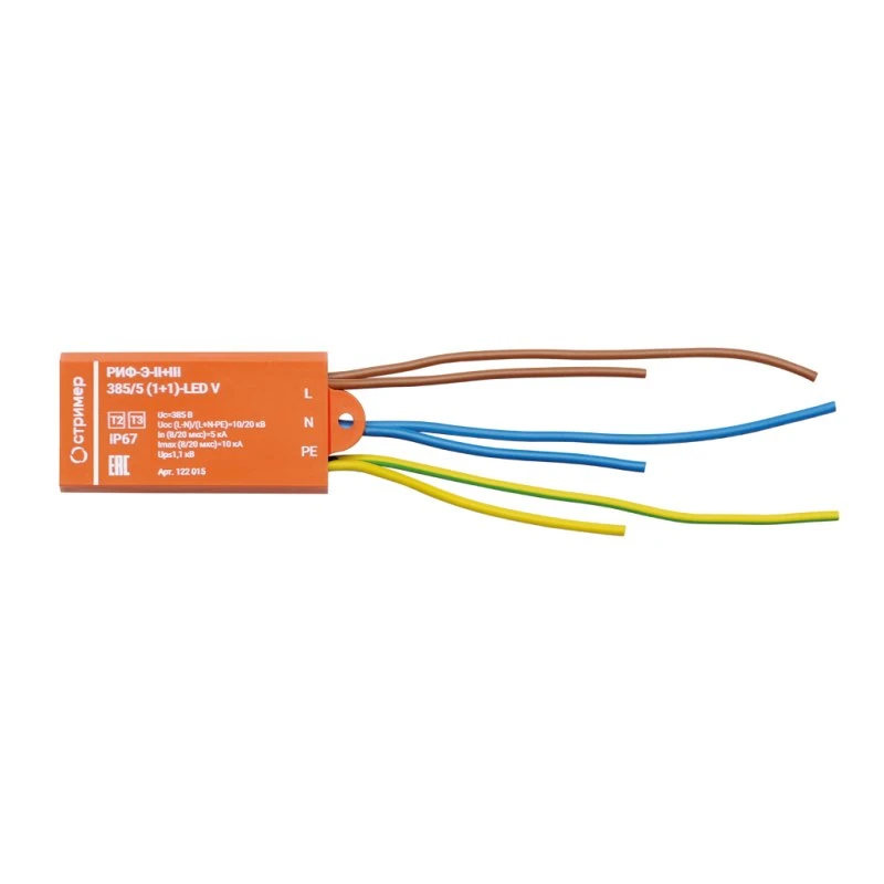 УЗИП (Устройство защиты от импульсных перенапряжений) для светодиодных светильников РИФ-Э-II+III 385/5 (1+1)-LED V СТРИМЕР 122015