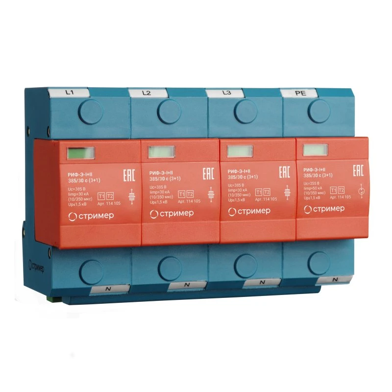 УЗИП (Устройство защиты от импульсных перенапряжений) РИФ-Э-I+II 385/30 с (3+1) СТРИМЕР 114105