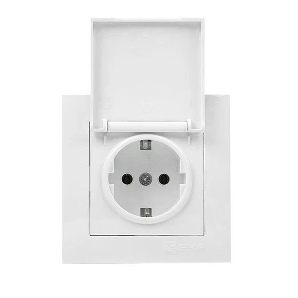 Валенсия розетка 1-местная с/з 16А белая с крышкой и защ. штор. IP44 EKF EWV10-124-10