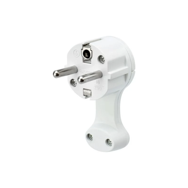 Вилка Евро угловая с з/к 16 А плоская за шкаф белая REXANT 16-0734