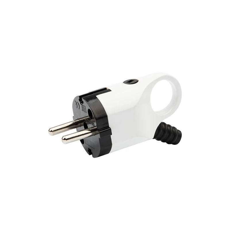Вилка Евро угловая с з/к 16А с ушком кольцом бело-черная REXANT 11-8952