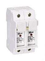 Держатель серии ДП-102 цилиндрического предохранителя ПЦ-102 DEKraft, 2P, для габарита С14 (14 x 51 мм), со светодиодной индикацией срабатывания, номинальный ток - до 64 А, ширина - 2 мод. х 18 мм, установка - на DIN- рейку, рабочее положение - любое, но предпочтительнее вертикальное, подключение питания - сверху или снизу, степень защиты - IP20. Предохранители применяются для защиты сетей от перегрузки и токов КЗ в сетях напряжением до 500 В.