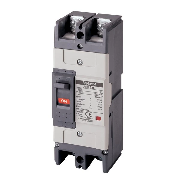 Силовой 2 полюсный автоматический выключатель переменного тока в литом корпусе на номинальный ток 20 А, с термомагнитным нерегулируемым расцепителем с номинальной отключающей способностью 14 кА. Двухполюсные автоматические выключатели LS Electric типа Metasol ABS предназначены для применения в электрических цепях с напряжением 690 В переменного тока частотой 50 гЦ, их защиты от токов короткого замыкания, токов перегрузки, а также для нечастых оперативных включений и отключений.