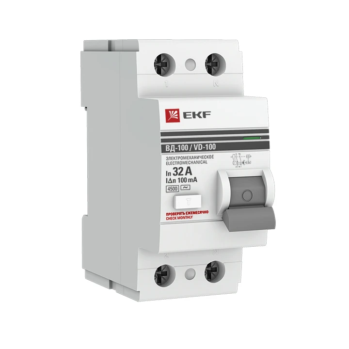 Выключатель дифференциального тока (УЗО) 2п 32А 100 мА АС PROxima EKF elcb-2-32-100-em-pro