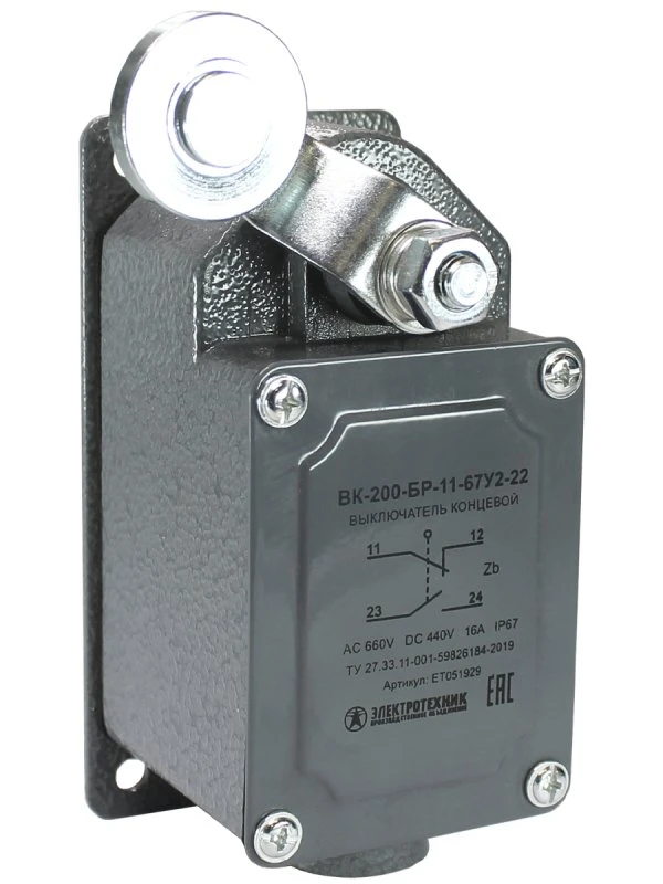 Выключатель концевой ВК-200-БР-11-67У2-22 ход влево самовозврат рычаг Электротехник ET051929