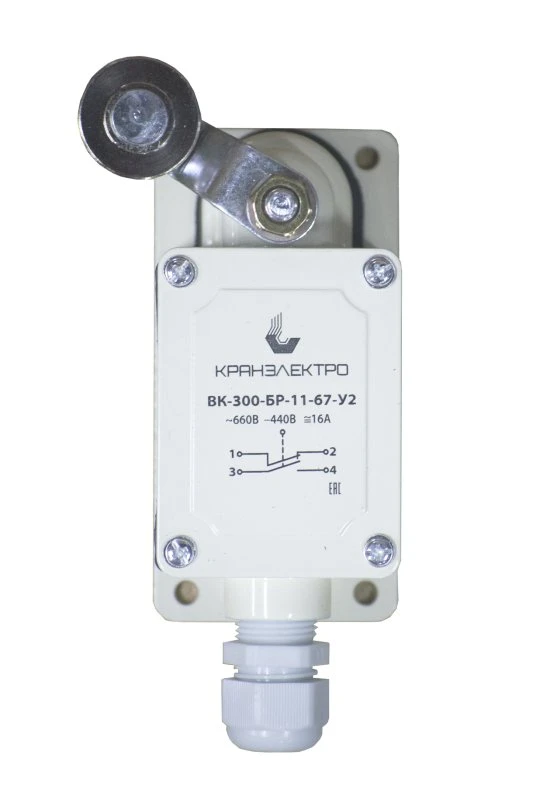 Выключатель концевой ВК-300-БР-У2-МТ рычаг с роликом, ход влево, cамовозврат, IP67, ступ 2 с сальником КранЭлектро 00-00020689