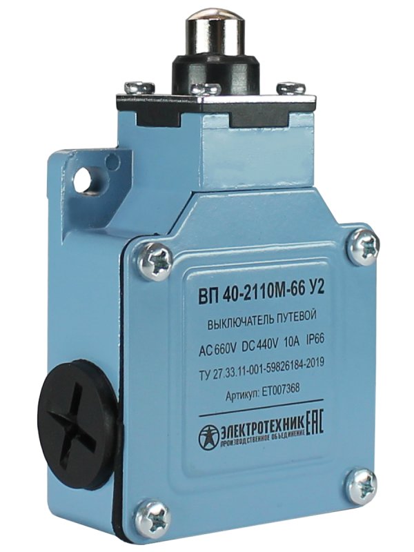 Выключатель путевой ВП 40-2116М-66 У2, рычаг со стальным роликом, 1з+1р, мгновенный, без сальника, IP66 Электротехник ET007368