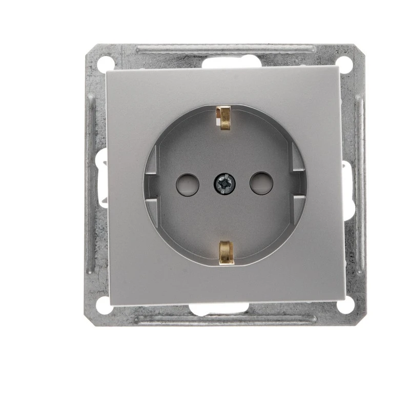 W59 Розетка скрытая с заземлением матовый хром Systeme Electric RS16-152-5-86