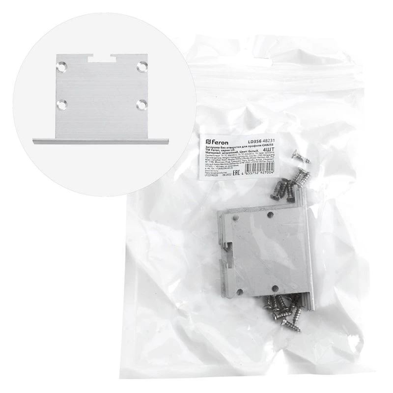 Заглушка для профиля CAB255 без отверстия алюминий (4шт) FERON LD356 48231