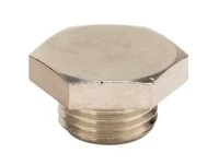 Заглушка из никелированной латуни с метрической резьбой M16x1,5. Назначение: закрытие неиспользуемых резьбовых метрических отверстий.